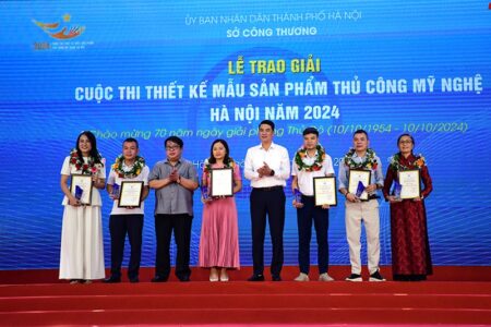 Chiều ngày 10/10, Sở Công Thương Hà Nội tổ chức lễ trao giải Cuộc thi Thiết kế mẫu sản phẩm thủ công mỹ nghệ Hà Nội năm 2024. 6 giải nhất, 18 giải nhì, 24 giải ba, 42 giải khuyến khích đã được trao cho 6 nhóm sản phẩm thủ công mỹ nghệ.