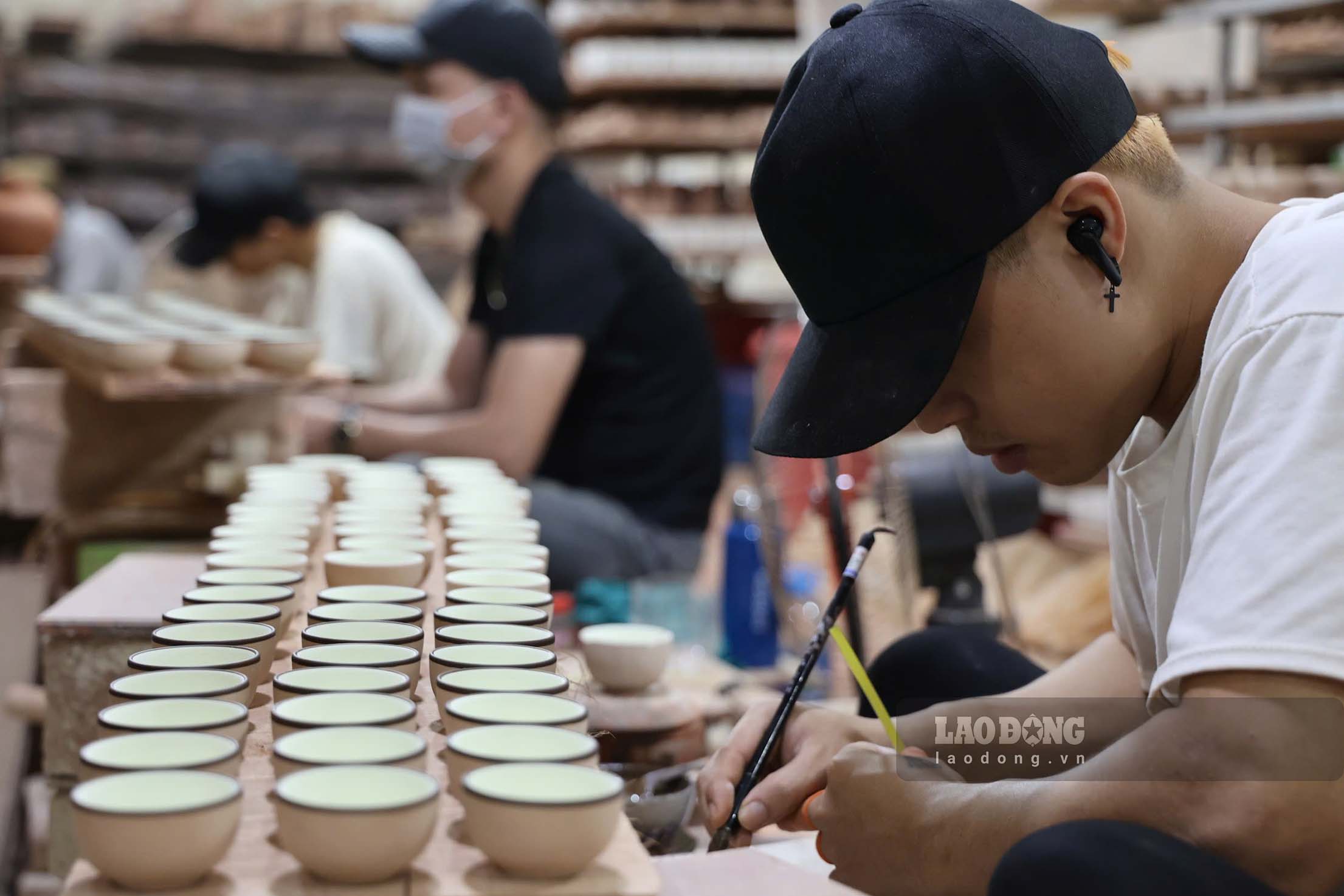 Bên trong các nhà xưởng làm gốm, những người thợ cả nam và nữ đều phải “luôn tay luôn chân” để tạo ra các sản phẩm thủ công mỹ nghệ.