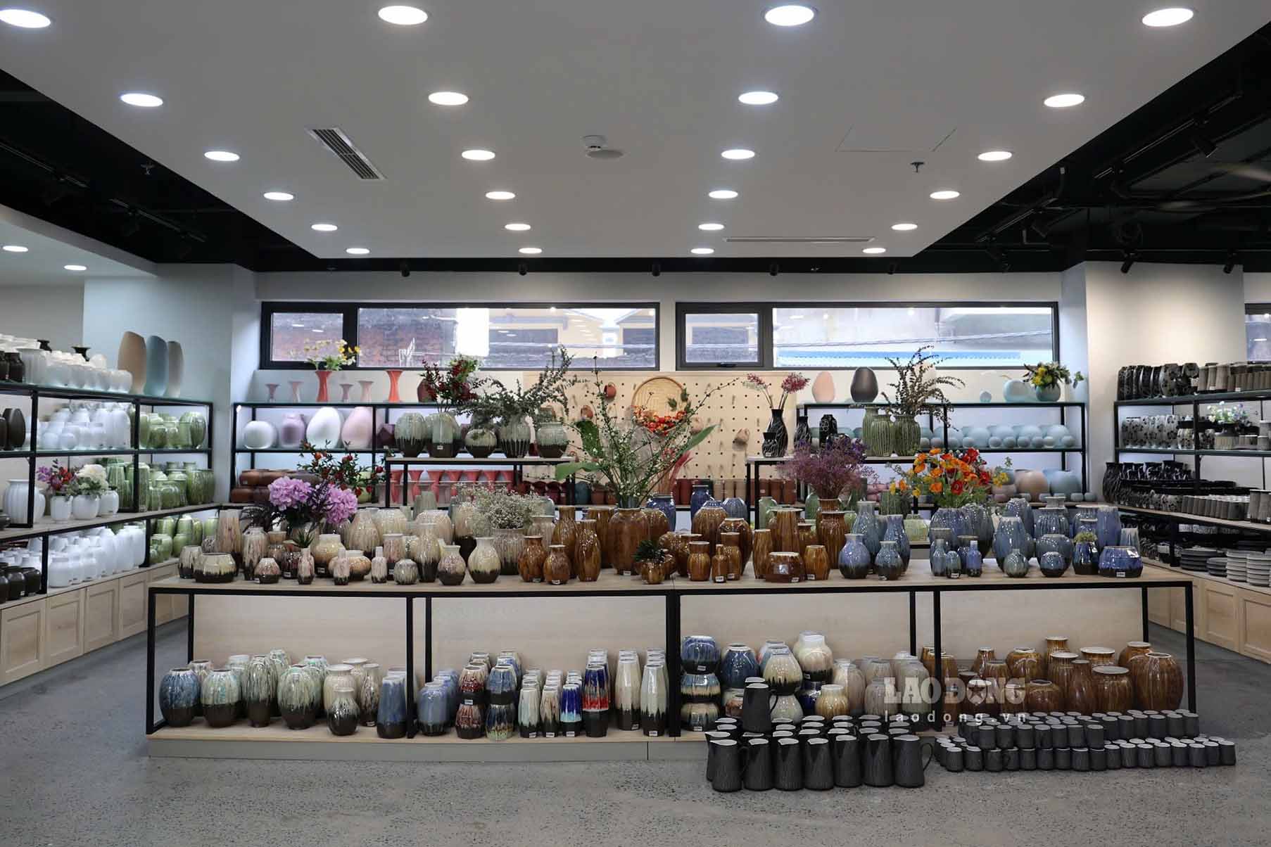 Ngoài nhà xưởng sản xuất truyền thống, làng gốm Bát Tràng cũng có hệ thống cửa hàng, thương hiệu dọc theo tuyến đường làng và khu chợ để giới thiệu và bán các sản phẩm gốm sứ, phục vụ du khách.